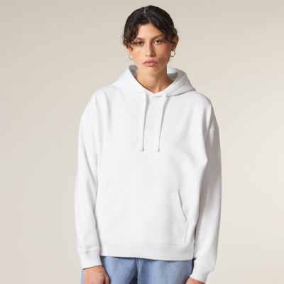 Creează un hanorac statement, imprimat pe modelul Slammer – hoodie unisex cu croială relaxată (oversized) și material gros de 350 gsm, 85% bumbac organic și 15% poliester reciclat ,certificat GOTS. Pentru confort maxim și un look urban, modern.